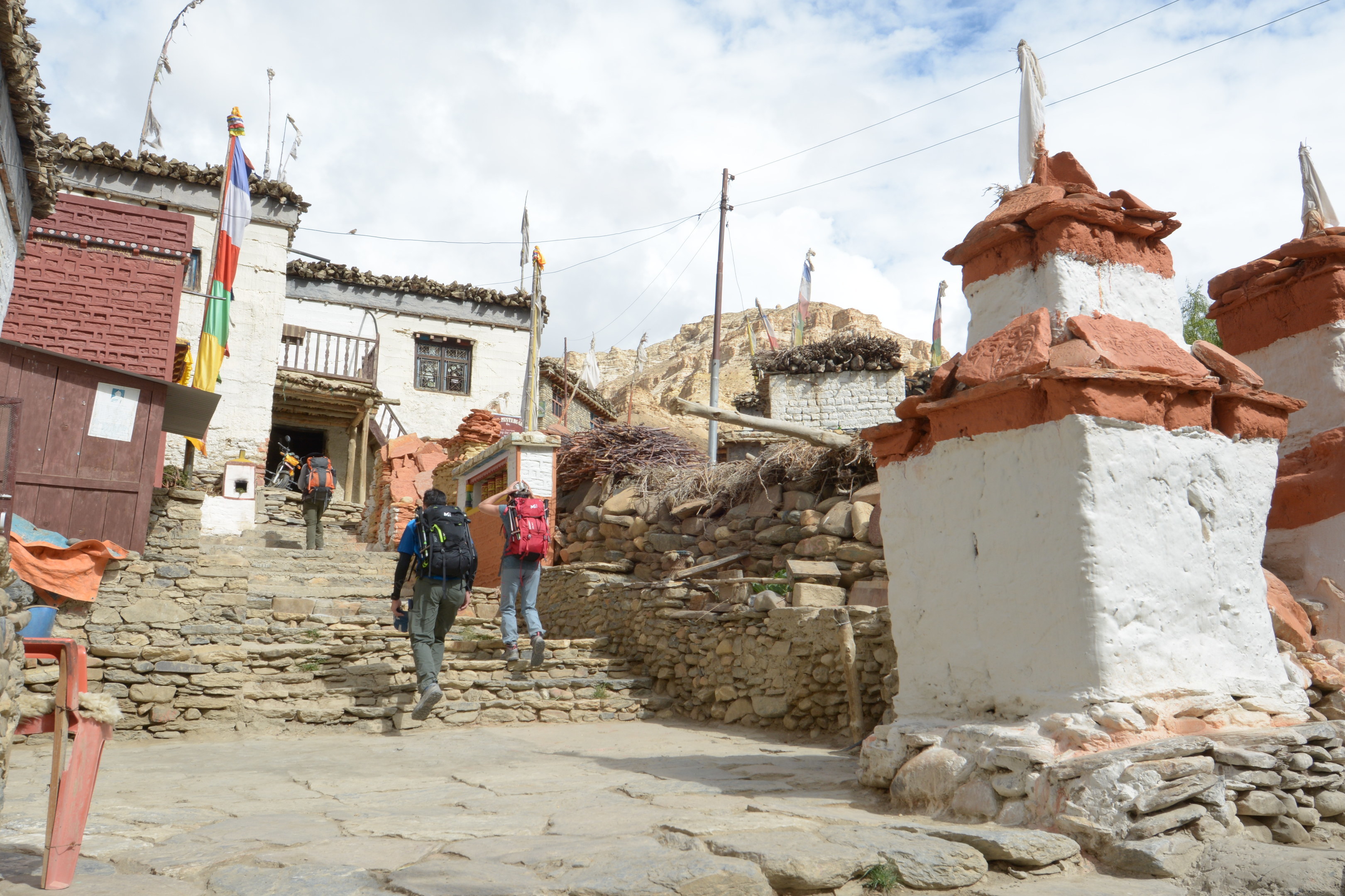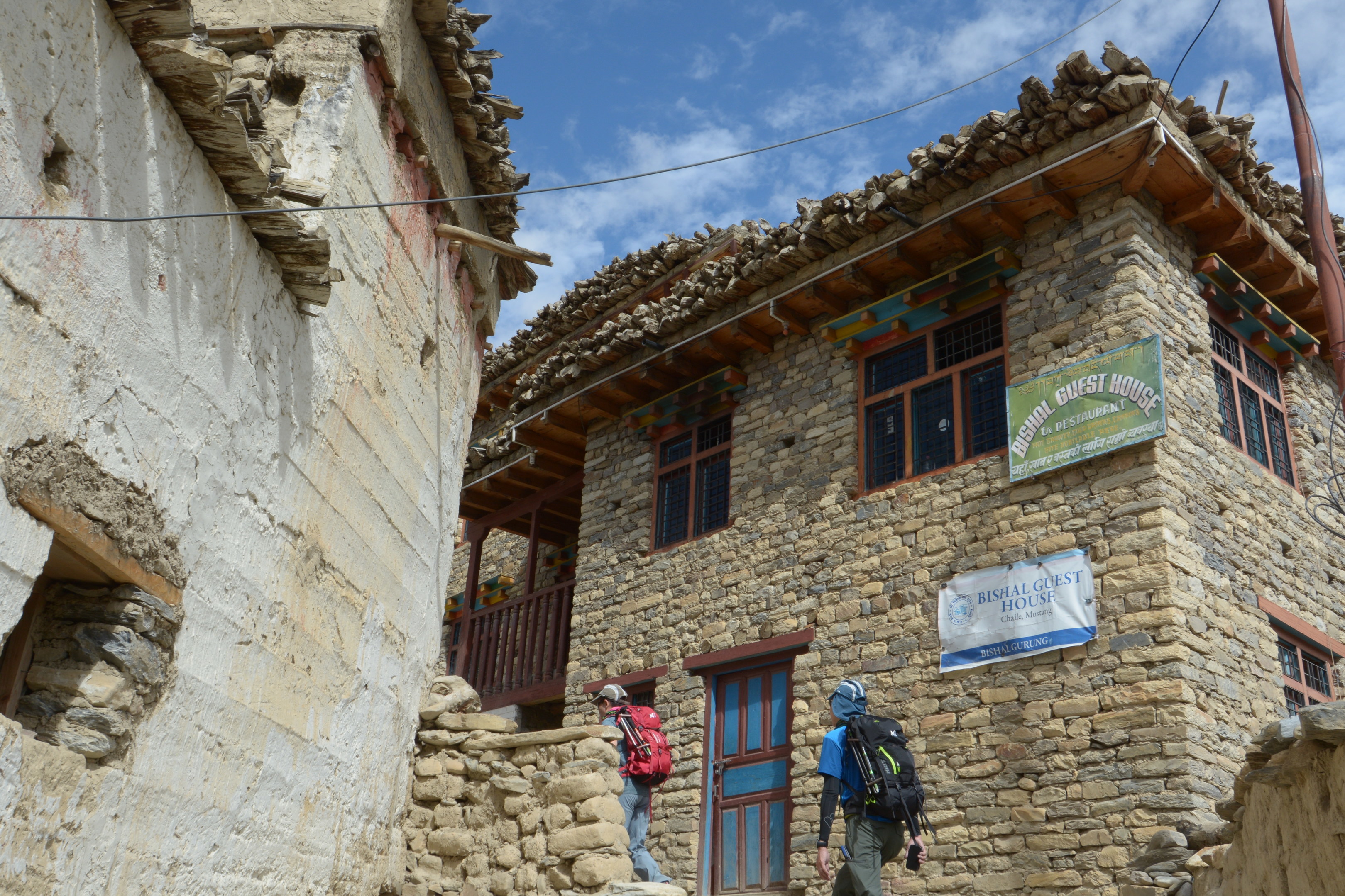 Finally!!! the entrance to the village of Syangmochen. Some villagers taking a stroll while we seek our night's shelter, Hotel Dhaulagiri. Incidently, Dhaulagiri is a mountain way to the south east of Jomsom, 8167m.