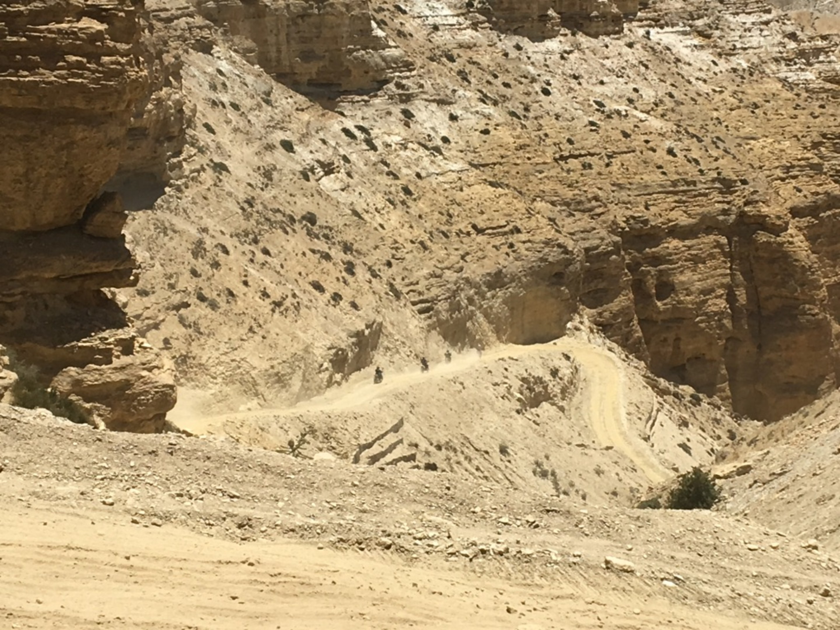 ...and the trek continues up, winding and raising its way up to another plateau. Thinkt it took us a better part of an hour for this section. Almost to the top, I could see puffs of dust which turn out to be a group of motorcyclists coming down. The road here is steep and full of soft loose sand so very dusty. Along the way up, I seem to have found my second wind and left my fellow trekkers behind. If I read my data correctly, we climb 300m within a distance of 1.1km. Maybe you can get a sense of how steep it is from the last photo.