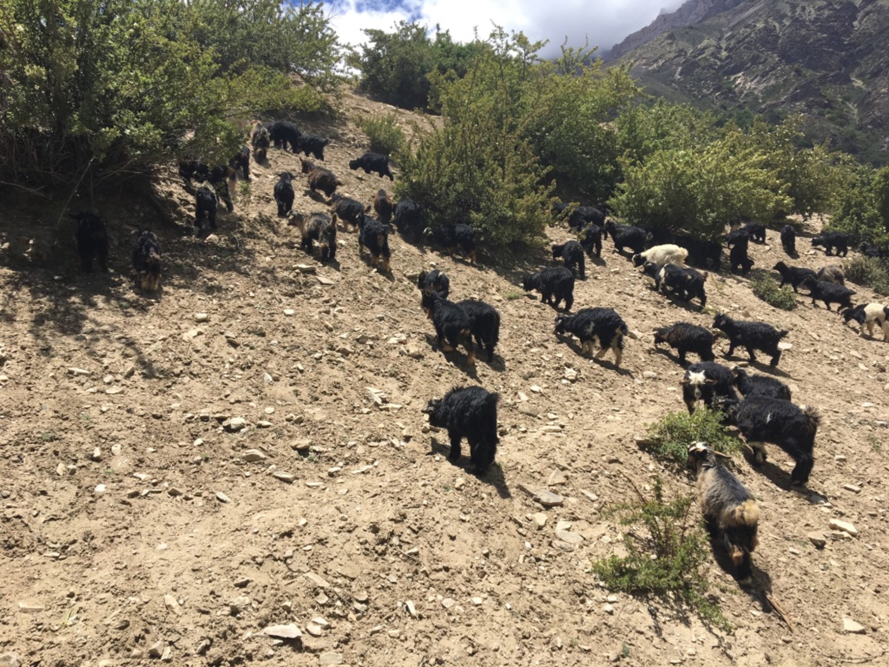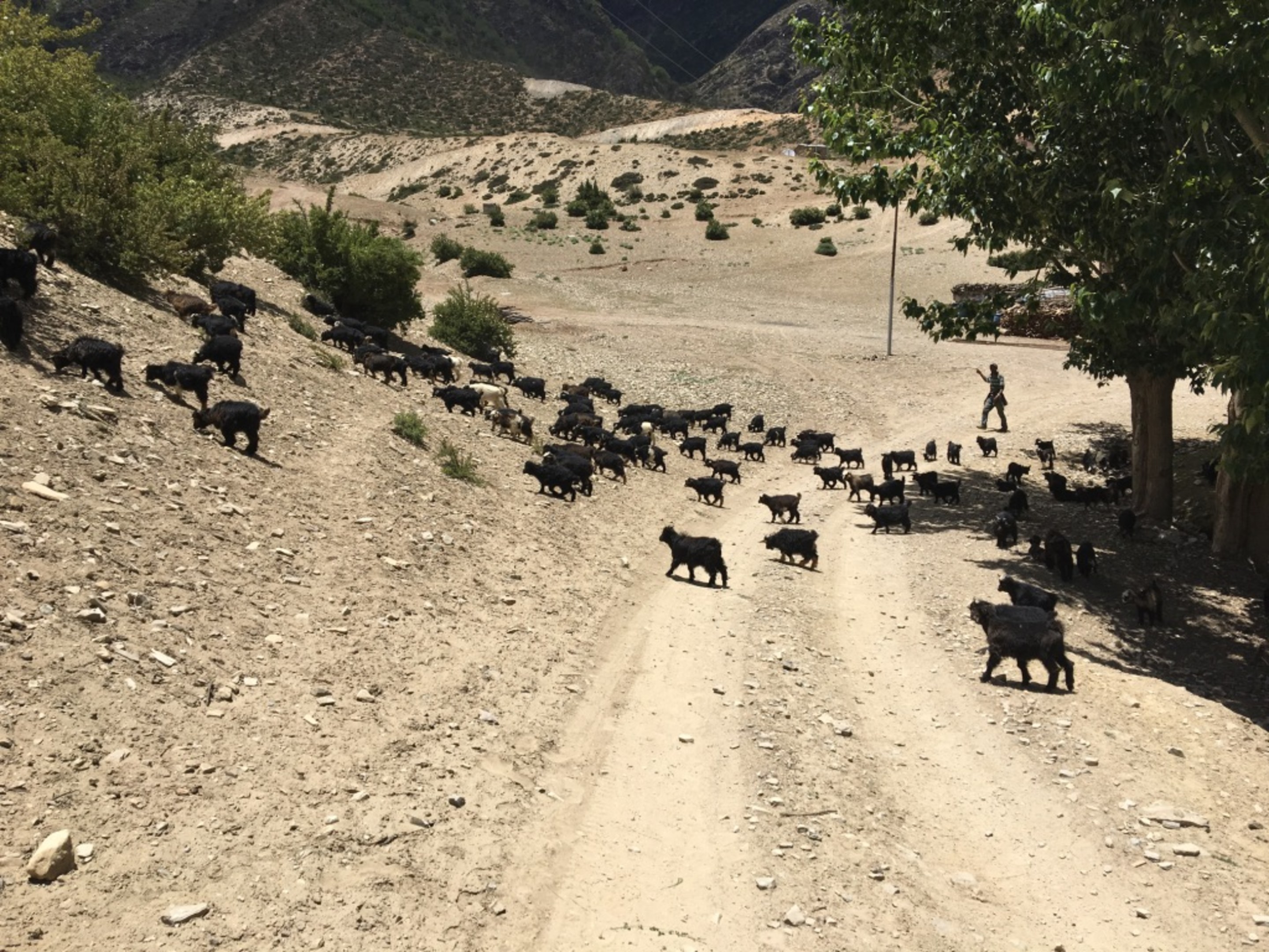 Approaching the village of Samar, we came upon this small roundabout which I thought was very strange to have seeing the amount of traffic. It wasn't until later when we took the 4x4 down from Lo Manthang that I realize why. One side of the roundabout cannot be used going from one direction to the other due the the condition of this part of the road. You can see again the three protection markers that usually means the entry to a village. As I approach the village proper, I came upon a herd of baby goats foraging. Pretty shaggy funny lookings guys. :)
